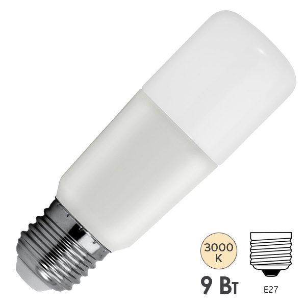 Светодиодная лампа цилиндрической формы Тунгсрам мощностью 9 Ватт с цоколем E27 теплый белый свет 93064052