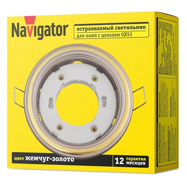Светильник 93 065 NGX-R10-001-GX53 Два цвета жемчуг/зол. Navigator 93065