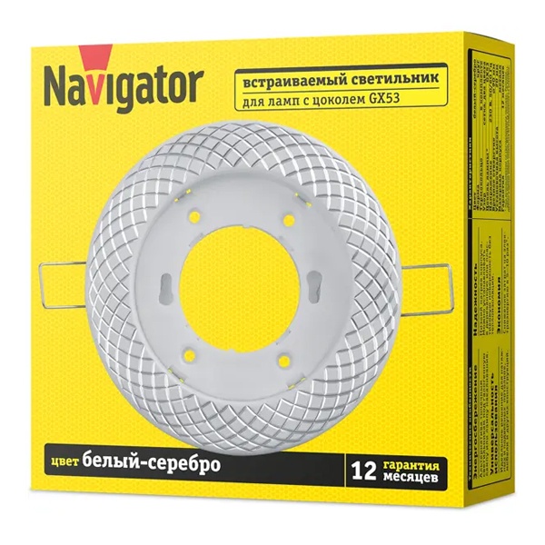Светильник круглый с узором сетка, встраиваемого монтажа Навигатор, под лампу с патрононом GX53, цвет белый/серебро 93072