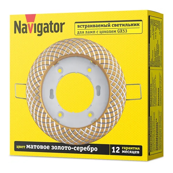 Светильник круглый с узором сетка, встраиваемого монтажа Навигатор, под лампу с патрононом GX53, цвет золото/серебро 93073