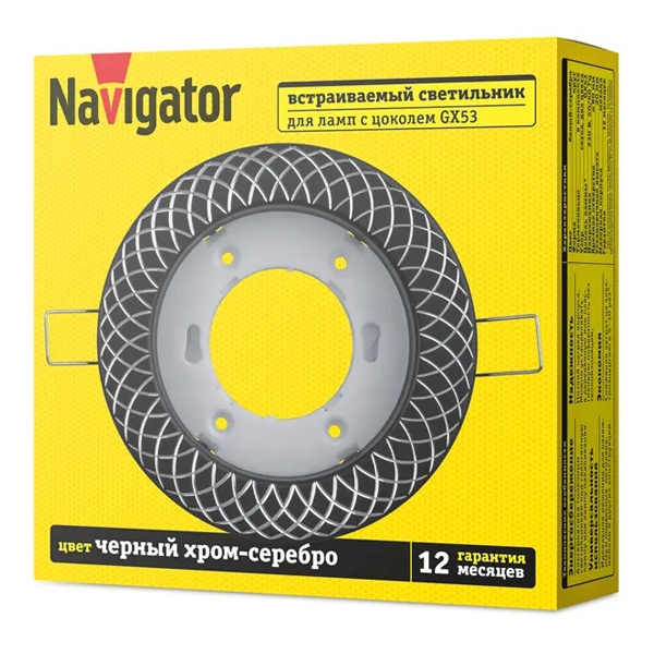 Светильник круглый с узором сетка, встраиваемого монтажа Навигатор, под лампу с патрононом GX53, цвет черный хром/серебро 93075