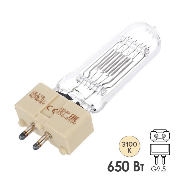 Галогенная театрально-студийная лампа Тунгсрам для освещения сцен, мощностью 650 Ватт, с цоколем G9.5 93106485