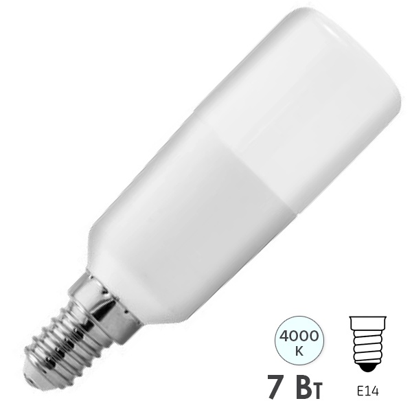 Светодиодная лампа цилиндрической формы Тунгсрам мощностью 7 Ватт с цоколем E14 нейтральный белый свет 93109514