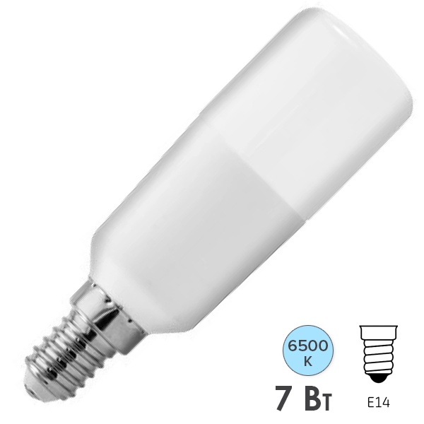 Светодиодная лампа цилиндрической формы Тунгсрам мощностью 7 Ватт с цоколем E14 холодный дневной свет 93110796