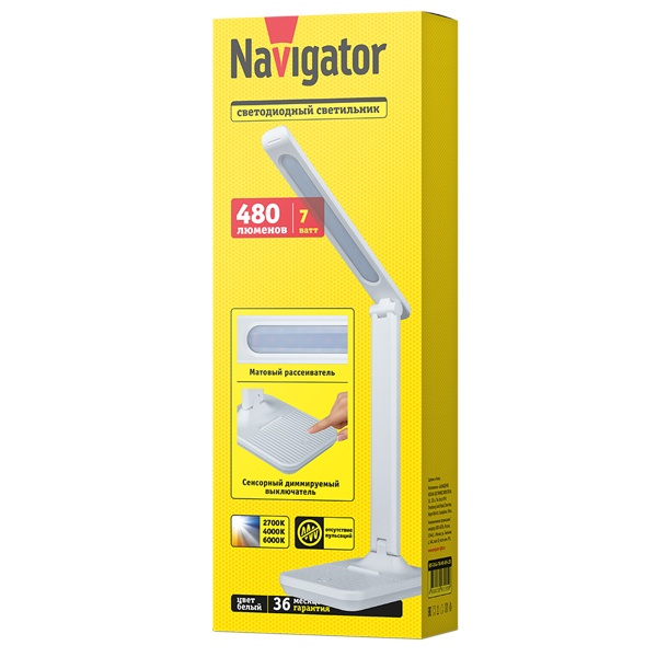 Настольный LED светильник Navigator сенсорный с функцией диммирования и смены цветовой температуры, белый 93155
