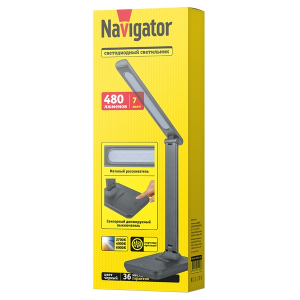 Настольный LED светильник Navigator сенсорный с функцией диммирования и смены цветовой температуры, черный 93156