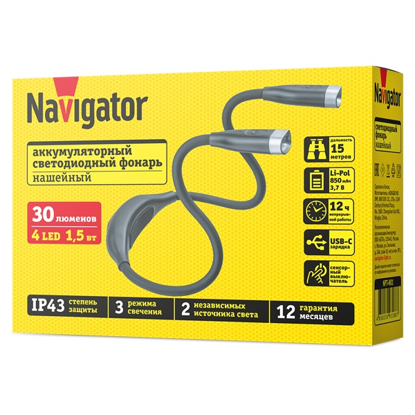 Аккумуляторный светодиодный нашейный фонарь Navigator серии NPT-N – отличное решение для использования дома, в офисе или в путешествиях.