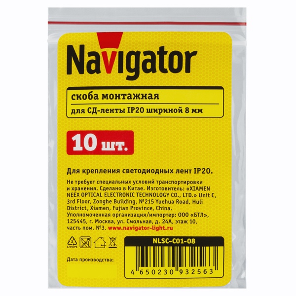 Пластиковая однолапковая монтажная скоба для светодиодной ленты шириной 8 мм, IP20, Navigator. 93256