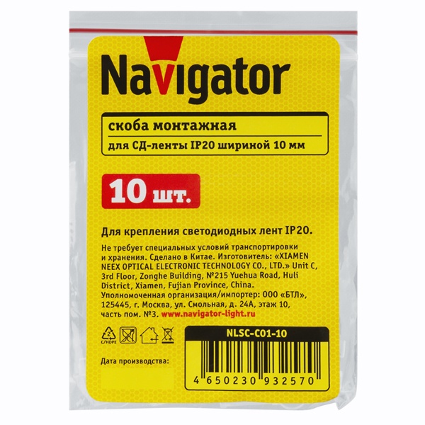 Пластиковая однолапковая монтажная скоба для светодиодной ленты шириной 10 мм, IP20, Navigator. 93257