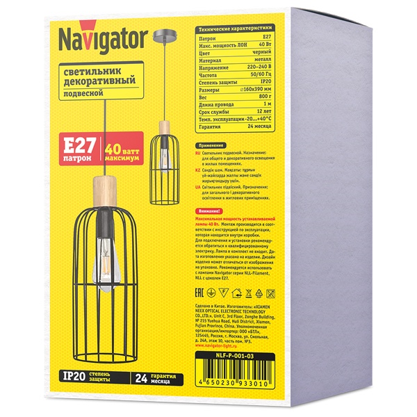 • Светильник Navigator 93 301 NLF-P-001-03 40W металл черный провод 1м