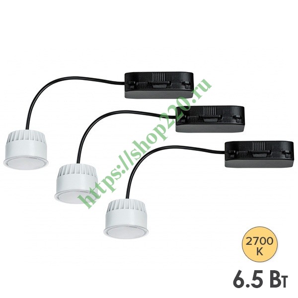 Данный вариант освещения из коллекции Coin от известной немецкой компании Paulmann представляет собой комплект светодиодных модулей, состоящий из 3 светильников. Внешне это одинаковые устройства встраиваемого типа. Они обладают компактным размером и сочетают в себе инновационные технологии, используемые для подсветки домашних интерьеров в современном стиле, а также коммерческих помещений при оформлении вывесок и логотипов. Особенностью набора светодиодных светильников является экологичный состав и высокая энергоэффективность. LED-модули рассчитаны на работу в сети напряжением 230 Вольт с максимальной потребляемой модулем мощностью 6.5 Ватт. Световой поток составляет 430 Люмен, а цветовая температура – 2700 Кельвин. Светильники сделаны из пластика сатинового цвета и включают в комплект черную соединительную коробку, которую скрывают за потолочной поверхностью. Светодиодная лампа имеет высоту 4 см и диаметр 4.9 см. Угол рассеивания составляет 110 градусов. Масса комплекта равна 306 г. Данные средства освещения обладают высокой степенью износостойкости до 15000 циклов включений и продолжительным сроком службы до 30000 ч. Главными достоинствами такого набора ламп является экономичное потребление электроэнергии, безопасность и простота в подключении с помощью быстрых зажимов без применения инструментов.