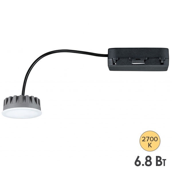 Модель потолочного LED-модуля от известного производителя светотехнической продукции Paulmann серии Coin UltraSlim представляет собой круглый сатиновый светильник компактного размера, который имеет встраиваемый тип установки и плоское основание. С его помощью обеспечивается стильное и современное оформление интерьера с приятным свечением и экономичным расходом электроэнергии. Данное устройство освещения имеет потребляемую мощность 6.8 Ватт в сети напряжением 230 Вольт. Световой поток составляет 425 Люмен, а цветовая температура – 2700 Кельвин. Модуль излучает теплый белый свет и подключается быстрыми зажимами без применения инструмента. Главной особенностью этой модели является наличие функции диммирования. Управление яркостью свечения осуществляется диммером типа R+C для электронного трансформатора, например Busch-Jаеger 6513U-102 или Merten MEG 5136-0000.