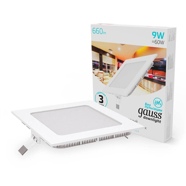 Светильник светодиодный Slim 9Вт 4000К IP20 660лм 220-240В ДВО квадрат бел. GAUSS 940111209