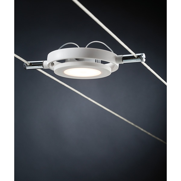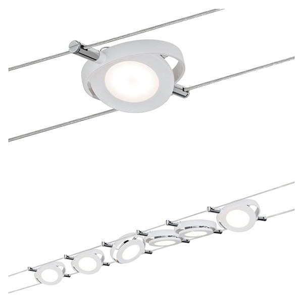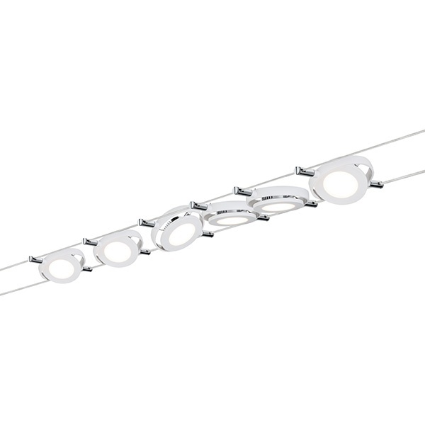 Комплект струнной системы Paulmann RoundMac с шестью точечными светодиодными светильниками мощностью 4 Ватта, цвет матовый белый 94106