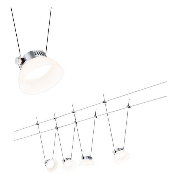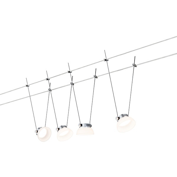 Комплект струнной системы Paulmann IceLED с четырьмя точечными светодиодными светильниками мощностью 4 Ватта, цвет матовый хром, белый 94112