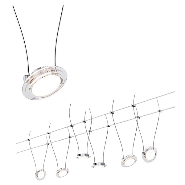 94117 Тросовая система 6 светильников Paulmann LED Twist Coin 6x4W 6x200lm 2700K 230/12V 10m хром матовый