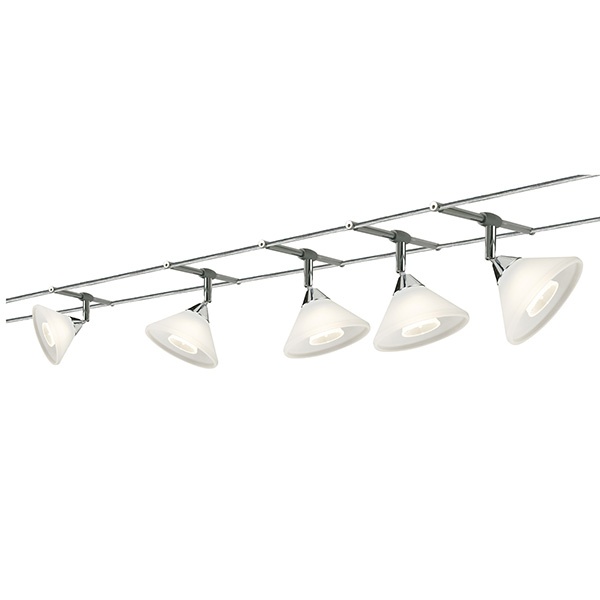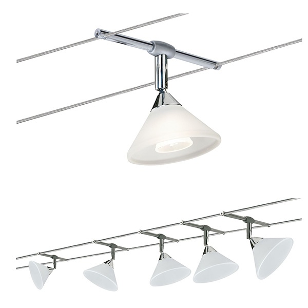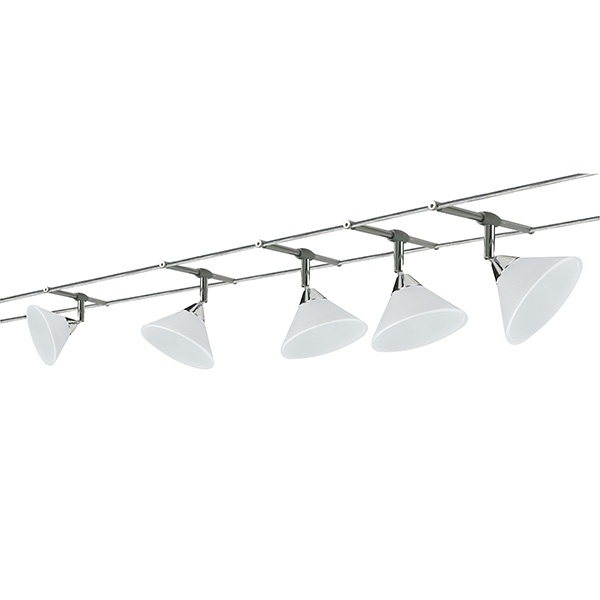 Комплект струнной системы Paulmann Colmar с четырьмя точечными светильниками под лампу с цоколем GU4 максимальной мощностью 10 Ватт, цвет хром, сатин 94143