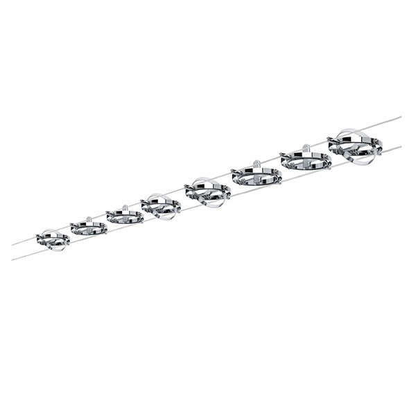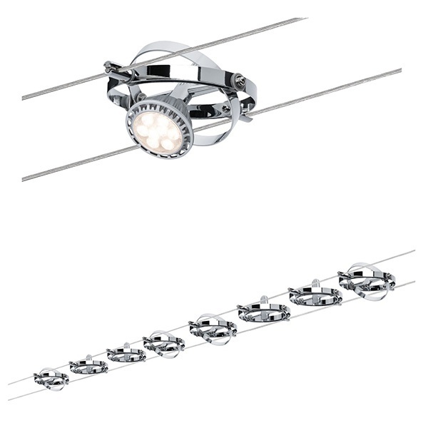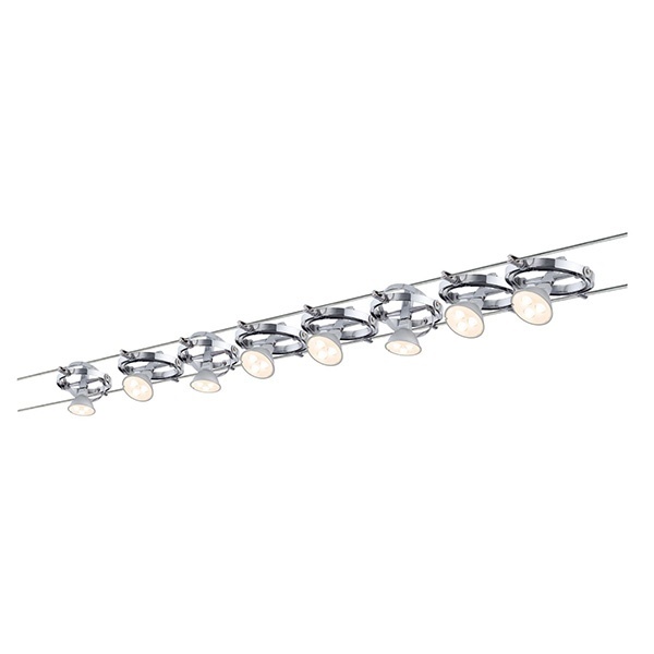 Комплект струнной системы Paulmann Cardan с 8 точечными светильниками под лампу с цоколем GU5,3 максимальной мощностью 10 Ватт, цвет матовый хром 94153