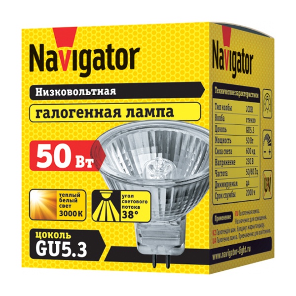 Галогенная лампочка акцентного освещения Навигатор мощностью 50 Ватт с цоколем GU5.3 94206