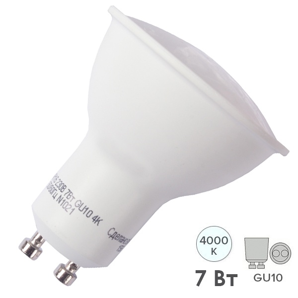 Энергосберегающая LED лампа акцентного освещения мощностью 7 Вт с цоколем GU10 белого света для точечных светильников 94227