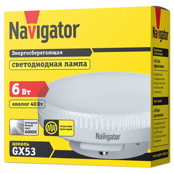 Лампа светодиодная GX53 - это источник света на основе технологии светодиодов (LED). Она представляет собой плоский круглую лампу с цоколем GX53, который обеспечивает высокую яркость и эффективность, используя значительно меньше энергии, чем обычные лампы накаливания.