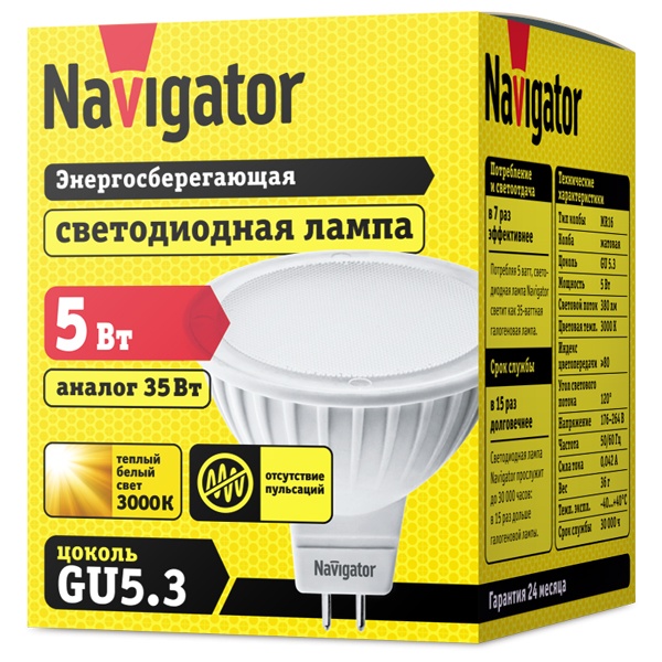 - Цоколь: GU5,3
