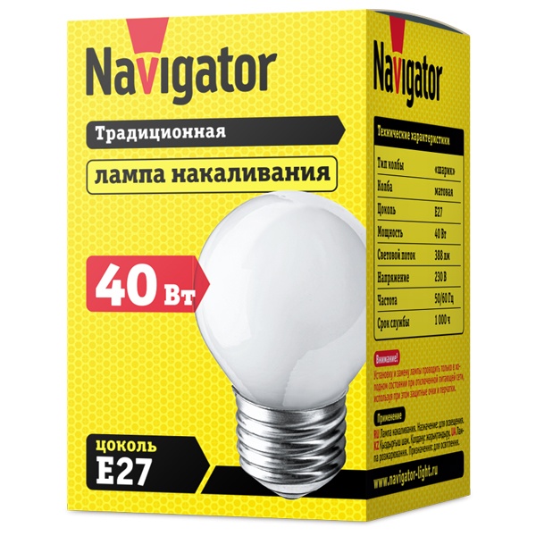 Обычная вольфрамовая лампа формы шарик мощностью 40 Вт с цоколем Е27 общего назначения 94311