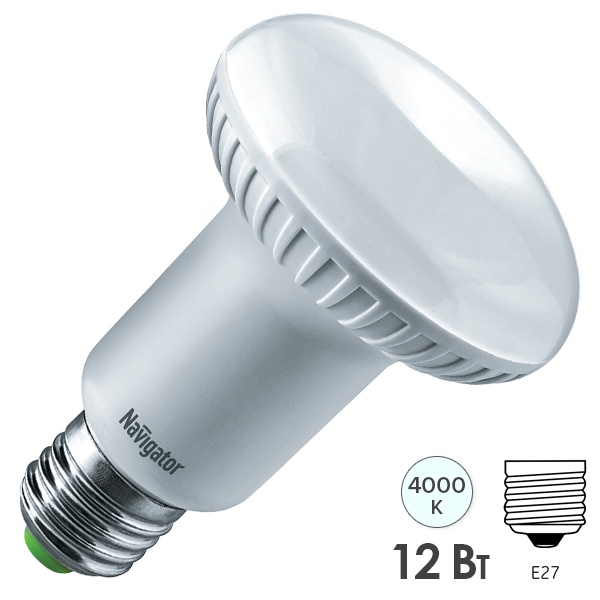 • Лампа светодиодная Navigator 94 336 NLL-R80-12-230-4K-E27 12W 4000K 230V 1000Lm белый свет