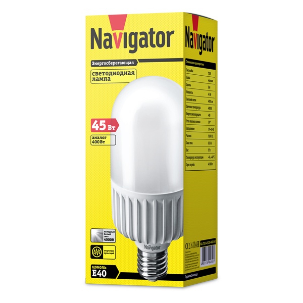 Светодиодная лампа промышленного освещения Навигатор, мощностью 45 Ватт, с цоколем E40, нейтральный белый свет 94340