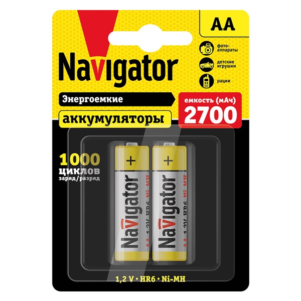 Никель-металлогидридный аккумулятор АА Navigator емкостью 2700 мА.Ч, упаковка 2 штуки 94465