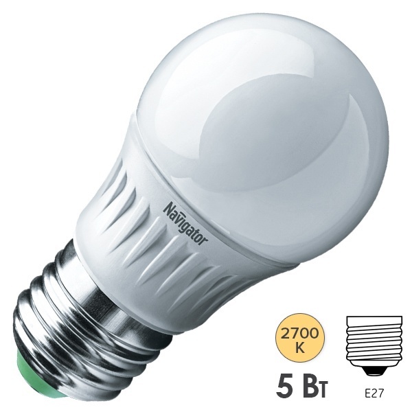 Cветодиодные энергосберегающие лампы общего освещения Navigator серии NLL-G повторяют форму и размеры стандартных ламп накаливания типа «шарик». Колба ламп матовая. Идеально подходят к любому светильнику, в котором используются данные типы ламп.