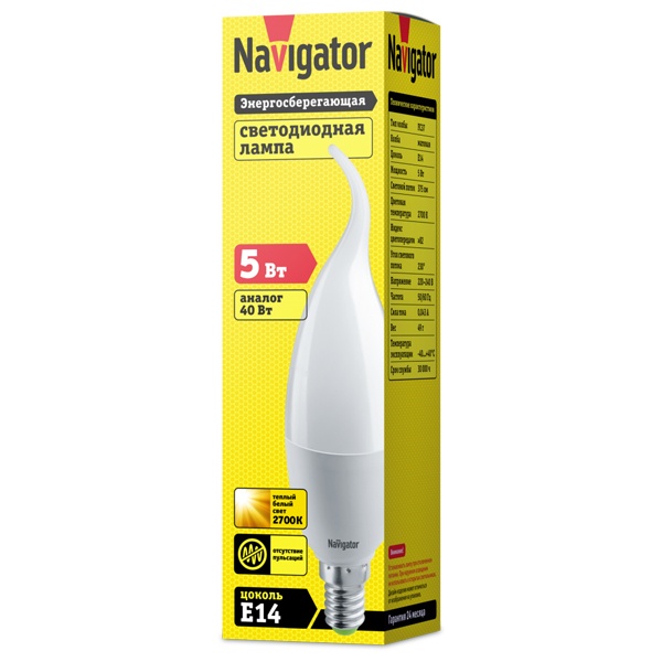 Энергосберегающая LED лампочка свеча на ветру, мощностью 5 Вт, с цоколем E14 (миньон), теплый свет 94496
