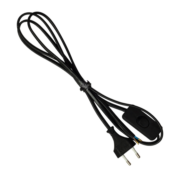Сетевой шнур длиной 1,7 метра с сечением 2x0,75 мм2, с вилкой и выключателем, с максимальной нагрузкой 1300 Вт, черного цвета 94668