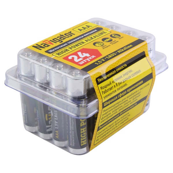 Щелочные батарейки мизинчиковые высокой мощности Navigator типоразмера ААА, упаковка 24 штуки в блистере 94787