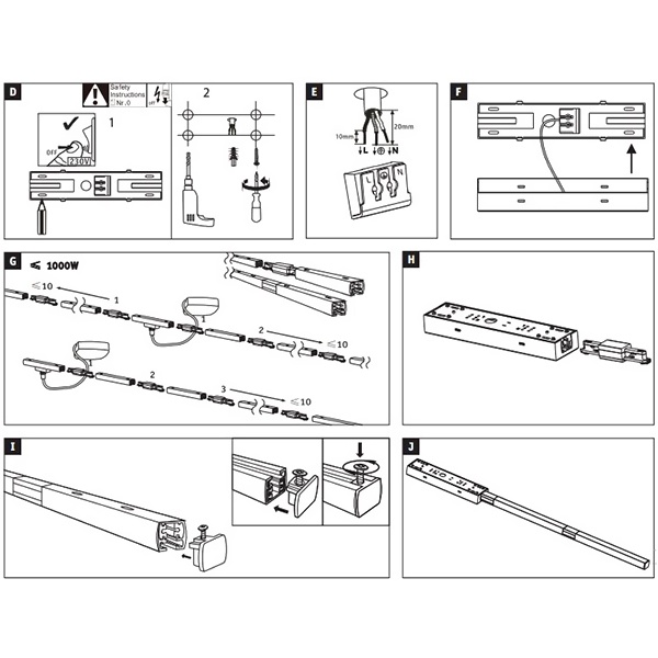 Питающий элемент устанавливаемый на удобном участке композиции системы шинопровода как в середине, так и на крайних сегментах.Используемый вместе с дополнительными компонентами, он позволяет вам создать собственную идеальную персональную 230-вольтовую систему URail. Система рассчитана на общую мощность 1000 Вт и предназначена для эксплуатации светодиодных светильников, светильников с энергосберегающими лампами и галогенных светильников.