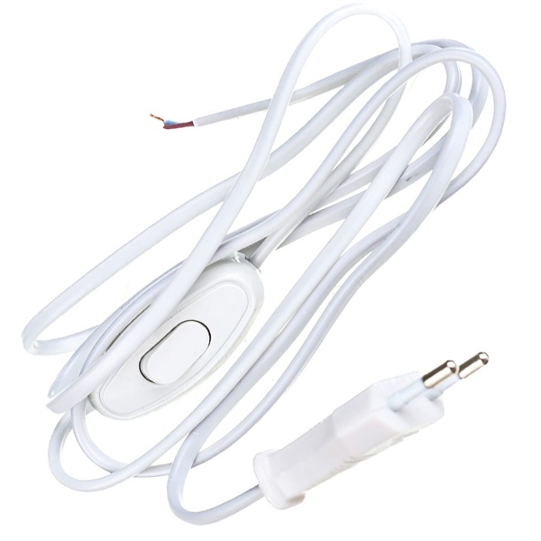Сетевой шнур длиной 1,7 метра сечением 2x0,75мм2, с вилкой и выключателем, белого цвета А1060