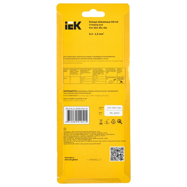 Клещи обжимные серии ARMA2L 3 с лепестковым двухконтурным профилем обжима, предназначены для опрессовки неизолированных наконечников НК.
