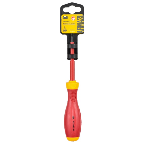 Диэлектрическая крестообразная отвертка К3 (Expert) предназначена для электромонтажных работ под напряжением до 1000В, изготовлена из хром-ванадиевой стали. Рукоятка из 2-х-слойной термопластичной резины PP+TPR.