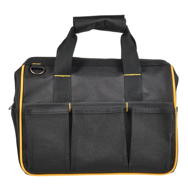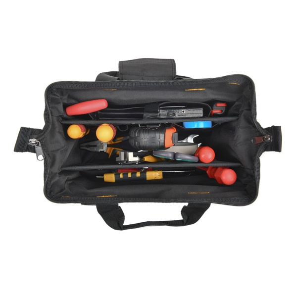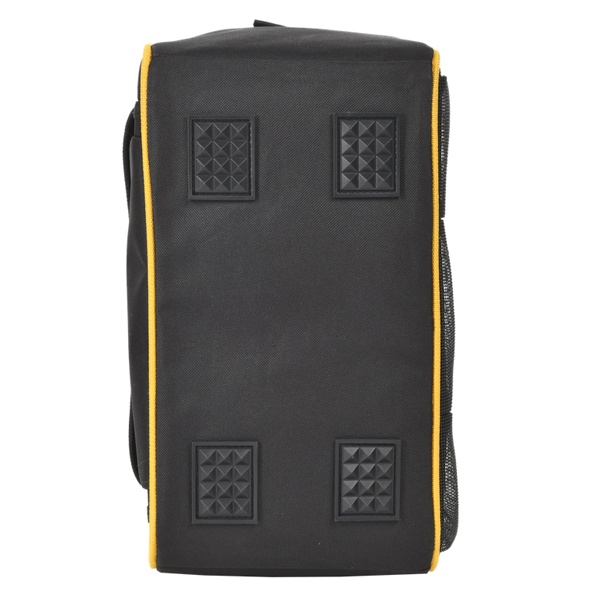 Прочный материал: изготовлена из износостойкого полиэстера 600D Oxford, устойчивого к разрывам, влаге и загрязнениям.Жесткое дно с резиновыми ножками: обеспечивает устойчивость сумки на поверхности и защищает содержимое от повреждений и влаги.Удобство переноски: оборудована мягкой тканевой ручкой и регулируемым наплечным ремнём с анатомической вставкой для комфортного ношения даже при длительной работе.Большой основной отсек: включает три внутренних кармана и крепление для рулетки — идеально для хранения основного инструмента.Переднее откидное отделение: оснащено 16 многофункциональными карманами для мелких инструментов, крепежа и аксессуаров.Заднее откидное отделение: содержит 6 карманов, включая специальный карман для хранения документации, планшета или инструкции.Боковые карманы с клапанами: обеспечивают дополнительное пространство для часто используемых предметов.Усиленная молния: с широкими прочными звеньями — для долгого срока службы даже при интенсивной эксплуатации.Компактные размеры делают BG-10 особенно удобной при проведении регламентных, профилактических и выездных работ. Это универсальный выбор для тех, кто ценит порядок, надежность и оперативный доступ к своему инструменту.