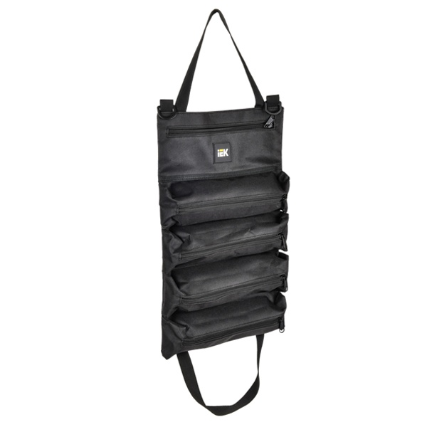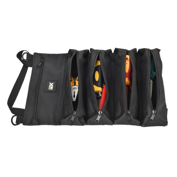 Сумка-скрутка BG-10 от IEK предназначена для удобного хранения и транспортировки инструментов. Она помогает организовать пространство, например, в багажнике автомобиля, обеспечивая быстрый доступ к необходимым предметам. Конструкция представляет собой прямоугольную основу с четырьмя вместительными отделениями на молнии и дополнительным карманом — идеальное решение для размещения мелкого инструмента и расходников. Благодаря системе стяжек сумка легко сворачивается в компактный и удобный формат. Закрывается на застёжку фастекс, а для комфортной переноски оснащена ручкой. Для подвешивания предусмотрены два вшитых полукольца.