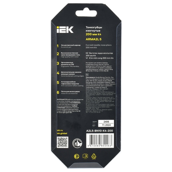 Тонкогубцы предназначены для выполнения точных монтажных, электротехнических и ремонтных работ, включая захват, удержание, изгиб и формование мелких деталей и проводов. Инструмент оснащён узкими, сужающимися к концам губками с изогнутой формой, что обеспечивает удобство при работе в труднодоступных местах и повышает точность манипуляций. Общая длина составляет 200 мм, благодаря чему тонкогубцы остаются компактными и подходят для работы в ограниченном пространстве.