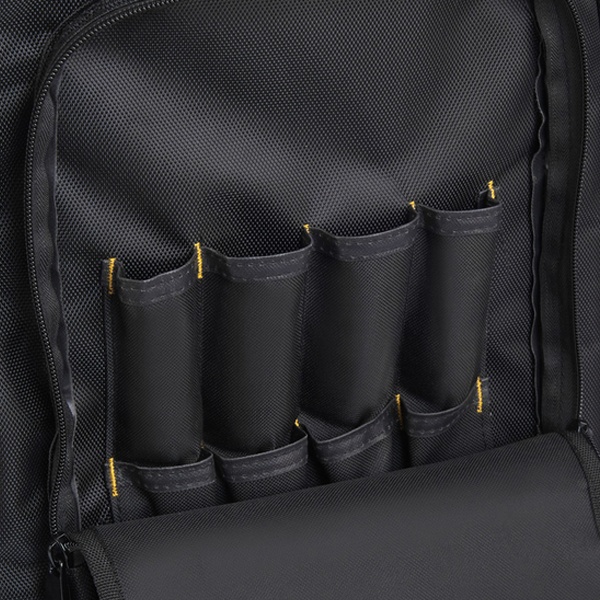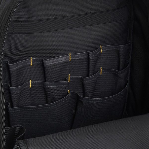 Большой основной отсек включает 10 карманов и 6 эластичных отделений для удобного размещения инструментов разных размеров.Передний отсек оснащён 8 дополнительными карманами, подходящими для мелкого инструмента и расходных материалов.Два просторных боковых кармана подходят для хранения габаритных предметов или личных вещей.Усиленные молнии с широкими звеньями гарантируют надёжную и долговечную работу даже при интенсивной эксплуатации.Для рюкзака предусмотрен вкладыш для инструмента BG-08, который можно приобрести отдельно. Он обеспечивает дополнительную организацию и удобный доступ к часто используемым предметам.