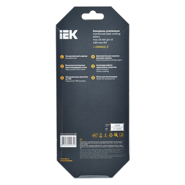 Ручные силовые боковые кусачки ИЭК 180 мм A2L5-HC10-K4-180