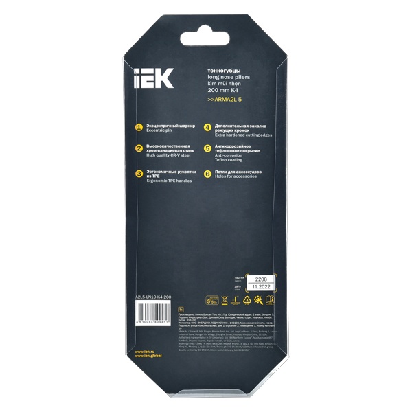 Длинногубцы прямые слесарно-монтажные 200 мм A2L5-LN10-K4-200