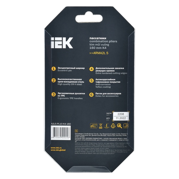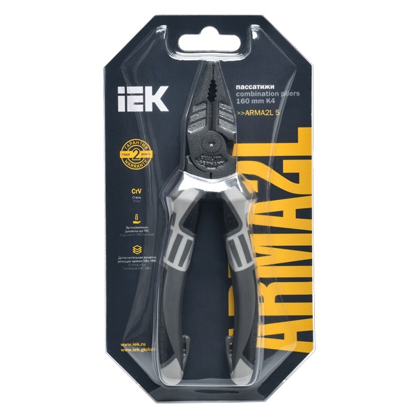 Пассатижи с двухкомпонентными ручками 160 мм ИЭК К4 A2L5-PL10-K4-160