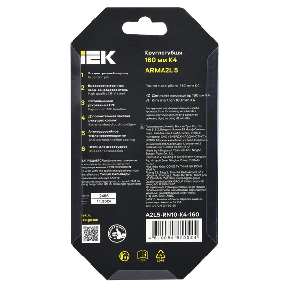 Ручные круглогубцы 160 мм ИЭК Мастер A2L5-RN10-K4-160