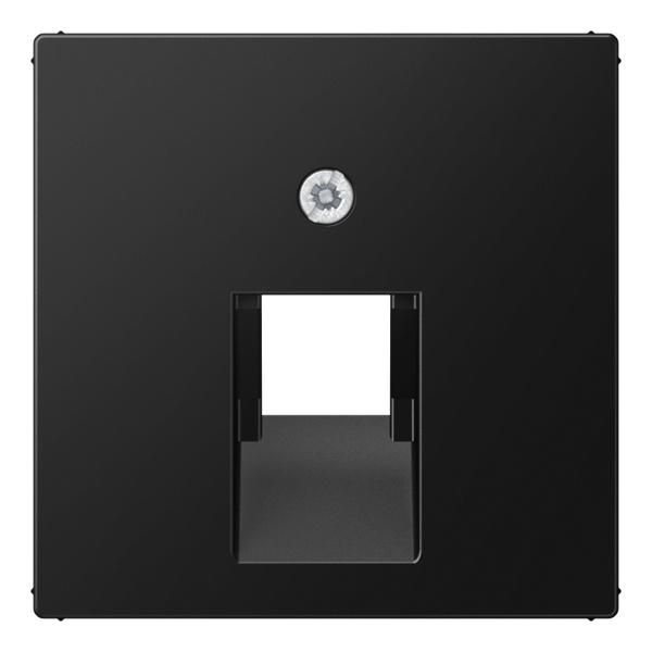 Декоративная, лицевая панель из пластика серии Юнг А на механизм телекоммуникационной розетки скрытого монтажа с разъемом RJ11/RJ45 Юнг, черного цвета A569-1BFPLUASWM