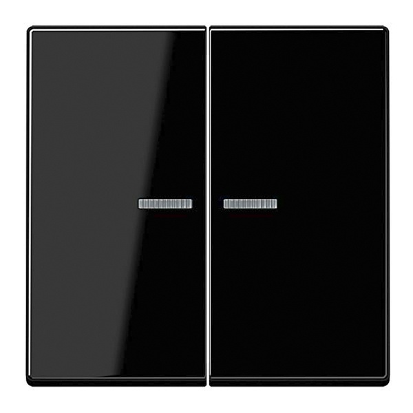 Декоративная, лицевая панель из пластика серии Юнг А на механизм двухклавишного выключателя с подсветкой скрытого монтажа, цвет черный A595KO5SW