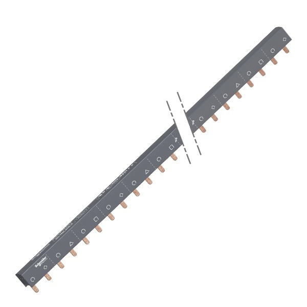Могут быть распилены и обрезаны за один заход.В комплекте две боковые крышки IP20После обрезания шинки установка крышек обязательнаНа каждую сторону шинки нанесена маркировка для идентификации фаз при установке во всех позициях.Места разрезов помечены на изоляции.В специальных гребенчатых шинках для автоматических прерывателей предусмотрен 9 мм промежуток для вставки дополнительных элементов iOF, iSD