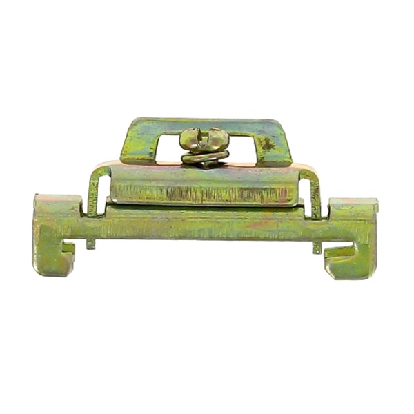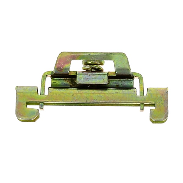 Зажимы применяются для фиксирования модульной аппаратуры и клеммных зажимов на DIN-рейке. Кронштейны для установки DIN-рейки позволяют установить рейку с отступом от монтажной платы, что дает возможность провести провода за DIN-рейкой. Кронштейн для установки DIN-рейки под углом позволяет установить клеммные зажимы под углом, что облегчает подведение к ним проводников. Изготовлены из оцинкованной стали.